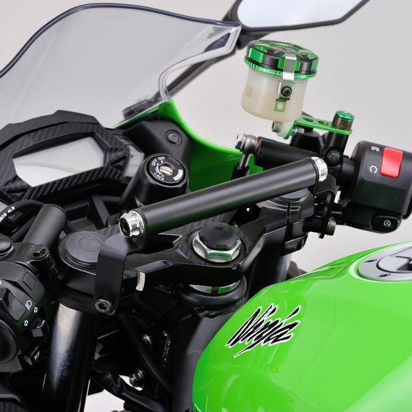 デイトナメーカーお問い合わせ:0120-60-4955【商品説明】車種別専用設計なので、電子機器を見やすく、スマートに取付可能です。マウントバー両端は分割式なので通すタイプのクランプにも対応します。マウントバー両サイドにはPREMIUM ZONEキャップボルトカラーM8のアッシュシルバーを付属。●バー有効長=155mm●パイプ径φ22.2●スチール製艶消し黒塗装仕上げ●別売のキャップボルトカラーM8でオリジナルカラー仕様にカスタマイズNinja250SL(15~16)