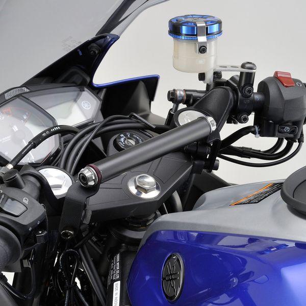 デイトナメーカーお問い合わせ:0120-60-4955【商品説明】車種別専用設計なので、電子機器を見やすく、スマートに取付可能です。マウントバー両端は分割式なので通すタイプのクランプにも対応します。マウントバー両サイドにはPREMIUM ZONEキャップボルトカラーM8のアッシュシルバーを付属。●バー有効長=155mm●パイプ径φ22.2●スチール製艶消し黒塗装仕上げ●別売のキャップボルトカラーM8でオリジナルカラー仕様にカスタマイズYZF-R25(15~18)YZF-R3(15~18)