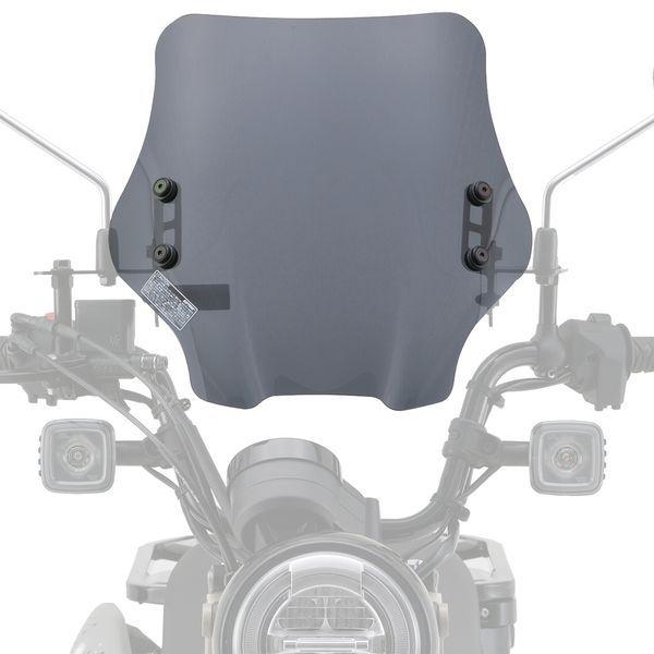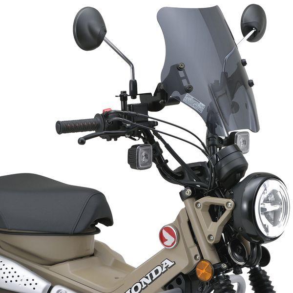 デイトナメーカーお問い合わせ:0120-60-4955【商品説明】スポーティーなエアロフォルムのウインドシールドセット。ポリカーボネート(厚さ3mm)を採用。同厚のアクリルに対し約30倍の強度を持ち、高い透明度と耐久性を両立。またハードコート処理を施し耐傷性をアップ。ウインドシールドの角度調整(約10度)が可能な車種専用の取付ステー付き。スマホやメーター等が装着可能なオプションバーφ22.2×58L付属。●シールド寸法:高さ370mm(センター340mm)×幅355mm●ステー部:スチール黒塗装CT125(20)〈JA55〉