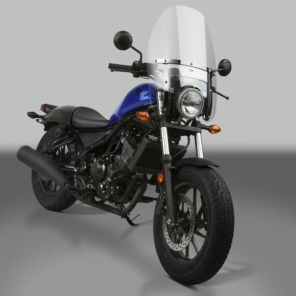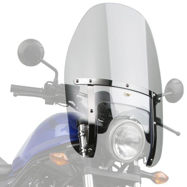 デイトナメーカーお問い合わせ:0120-60-4955【商品説明】防風効果抜群でツーリングでの疲労を軽減。シールド本体は傷に強くクリアーな視界が得られるポリカーボネート製。車種専用ステー付きでボルトオン装着可能です。●H482~533×W475mm●ポリカーボネート製 板厚4mm●表面処理:Quantum Hardcoated●シールド色:クリアーRebel250(17~20)〈MC49〉Rebel500(17~20)〈PC60〉