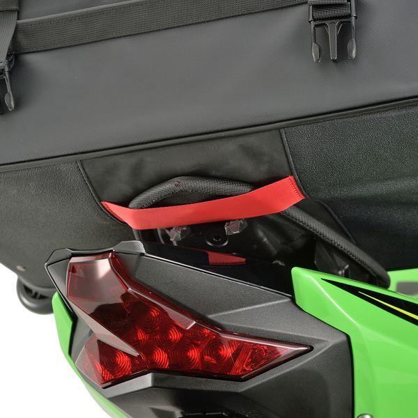 デイトナメーカーお問い合わせ:0120-60-4955【商品説明】バイクに積めるトラベルバッグ。・トロリーバッグとして旅行に。トロリーバッグとして使える滑らかな静音キャスター付き。・シートバッグとしてツーリングに。底面に滑り止め付きでスーパースポーツでも前にずれない。●最大積載重量:10kg●サイズ:H300×W530×D320(mm)●2段階調節キャリーバー:890mm→990mm●付属品:固定ベルト、長物固定ベルト、レインカバー