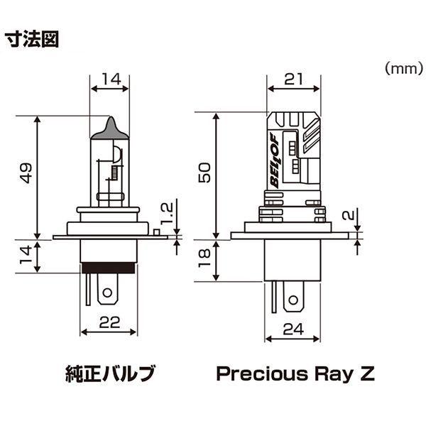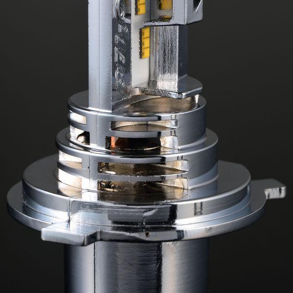 デイトナメーカーお問い合わせ:0120-60-4955【商品説明】バルブ型LEDヘッドランプバルブ。バルブフランジ前方に冷却ファンを配置することでフランジ後方を小型化。ハロゲンバルブ同等寸法なので、取付場所や配線の取り回しに悩むことはありません。プレシャス・レイゆずりのLED素子配置で安定した照射、ハイ/ローの切り替えにも瞬時に対応。白さが際立つ6500ケルビン。後方寸法をハロゲンバルブに近付けるため、冷却ファンをバルブフランジ前方へ配置。●高輝度LED素子をHi/Low各6個配置 明るさ Hiビーム1800ルーメン/Lowビーム1600ルーメン(当社測定より)●ドライバー一体型●JIS規格に基づいた安心設計●白さ際立つ 色温度:6500ケルビン●防塵防水構造の電動ファン採用※ この商品は、ハロゲンバルブ採用の直流(DC)12V二輪車専用品です。6Vや交流(AC)の二輪車には使用できません。※ 購入前に取付車種とバルブ形状が一致していること、寸法図を参考にヘッドライトケース内に取付スペースが確保されていることをよくご確認ください。純正バルブシェード採用車はシェードまでの距離の確認も必要です。車両によっては純正バルブシェードの取り外しが必要です。※ 輸入外車へ装着された場合、消費電力の違いから車体側のシステムが作動し球切れ警告灯が点灯する場合があります。