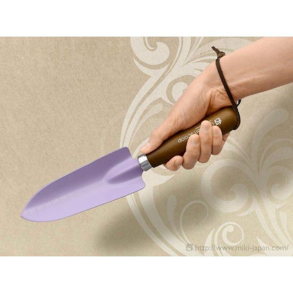 【商品説明】●おしゃれにガーデニングを♪細身で可愛いスコップです。●みきかじや村 GardenScoop バイオレット●おしゃれにガーデニングを♪細身で可愛いスコップです。●カラーはグリーン・バイオレット・サクラの3色。 グリップは天然ブナ柄を使用。 握り易い大きさに仕上げています。 刃は全身本焼仕上ですので大変強く、首部分が折れる心配がありません。 硬い土でも簡単に掘ることができます。 また、最大15cmまで深さが測れるメモリ付ですので球根栽培の植え付けに大変重宝します。●ワンポイント!※細幅ですので狭い隙間(プランターのキワや花と花の株間など)にも楽々入ります。●商品コード:TS142●長さ:295 mm●刃厚:1.5 mm●刃長:150 mm●幅 :60 mm●重さ:130 g