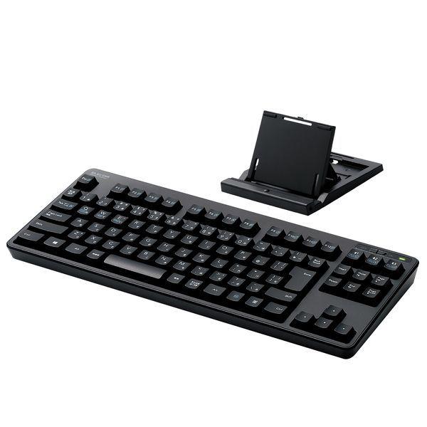 エレコムメーカーお問い合わせ:0120-898-794【商品説明】●タイピングしやすい、JIS規格準拠の標準日本語配列のキーボードです。●大型のエンターキーや、独立して配置されたDeleteやInsertなどの特殊キーにより、誤入力しにくく快適なキータイピングが行えます。●省電力を実現するBluetooth(R)5.0 Class2規格に適合しており、Bluetooth(R)4.0以降に対応したパソコンやタブレットであれば、レシーバ無しで接続できます。●※Bluetooth(R)に対応していないパソコンやタブレットでも、規格に適合したBluetooth(R)アダプタを用意することで使用可能です。(推奨Bluetooth(R)アダプタ:LBT-UAN05C2(別売))●専用ドライバなどのインストールは不要で、ペアリングするだけですぐに使用可能です。●最大3台のマルチペアリングに対応し、切り替えボタンを押すことで登録したデバイスを瞬時に切り替えることができます。●デスク周りのスペースを有効に使えるテンキーレスのコンパクトタイプです。●外出先での使用にも安心な電池式です。●不使用時の電池の消耗を防止できる電源スイッチを搭載しています。●アクセス状況、電池残量を知らせてくれるLEDランプがついています。●最大1000万回のキーストロークに耐える丈夫なキー設計で、長期間に渡って使用可能です。●Webブラウザやメディアプレーヤーの機能などを専用キーを押すだけで実行できる13種類のマルチファンクションキーを搭載しています。●WindowsやAndroid/Mac OS/iOSのそれぞれに最適化した入力モードを搭載しています。●コンパクトながら19mmのキーピッチと、日本語92キーを採用し、快適なタイピングが可能です。●キートップをラバードームで支えるメンブレン方式を採用しています。●キートップにはスタイリッシュで見やすいオリジナルフォントを使用しています。●Android端末で、キーボードの印字通りのキー入力ができるエレコム独自のアプリ「ELECOM Keyboard layout」に対応しています。※Android4.0以降専用です。●姿勢に合わせて傾斜角を2段階で調整できる角度調整スタンドが付いています。●スタンドにはしっかりしたキータッチに役立つ滑り止めが付いています。●誤って水などの液体をキーボード上にこぼしても、本体裏面の水抜き穴からすぐに液体を排出できる排水機能を装備しています。※防水設計ではありません。