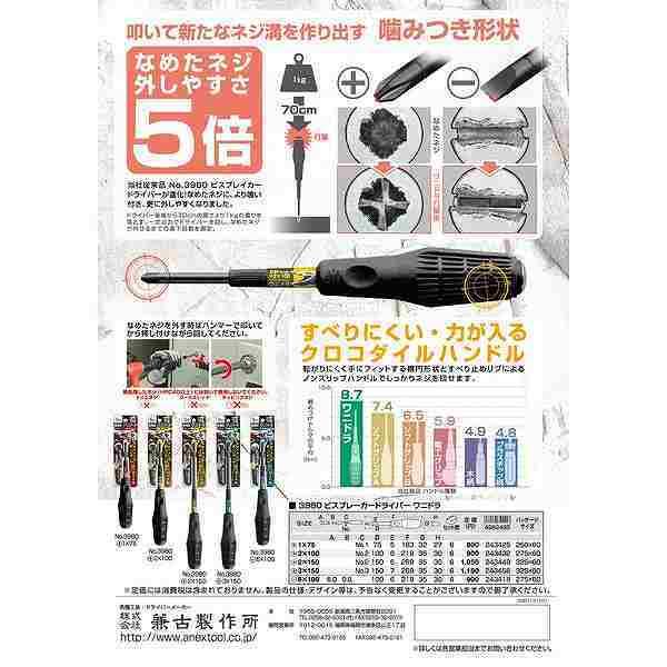 【商品説明】●特徴●なめたネジも新しいネジも両方回せる●特殊刃先形状が新たな溝をつくります●ハンマーで叩ける座金付●靭性・耐摩耗性に優れた高級クローム・モリブデン・バナジウム鋼を採用●高精度ブラックポイント仕上げ●マグネット付●仕様、規格●寸法 全長269×幅35×先端+2×有効150●【刃先】クローム・モリブデン・バナジウム鋼 【ハンドル】PP+TPE