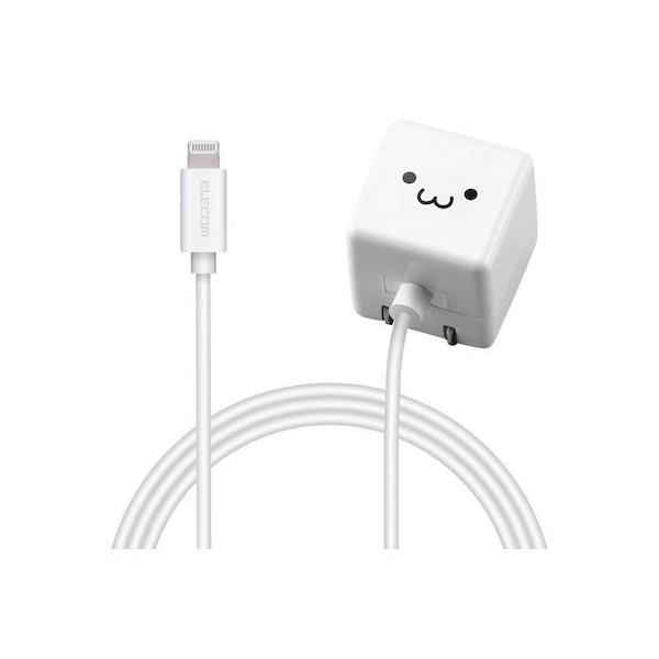 エレコムメーカーお問い合わせ:0120-898-794【商品説明】●家庭用コンセントからLightningコネクタ搭載のiPhoneやiPodを充電できるLightningケーブル一体型のAC充電器です。●携帯に便利なコンパクト設計のかわいいキューブ型デザインを採用しています。●Lightningケーブル一体型なので、別途ケーブル等を用意することなく使用可能です。●壁面のコンセントに接続してもゆとりのあるケーブル長1.5mを採用しています。●コンパクトサイズでありながら、未使用時は電源プラグを折りたたんで充電器本体に収納できるので持ち運びに便利です。●※端末本体や充電器が濡れた状態で充電すると、異常な発熱・焼損の原因となり大変危険ですのでおやめください。