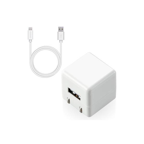 エレコムメーカーお問い合わせ:0120-898-794【商品説明】●家庭用コンセントからLightningコネクタ搭載のiPhoneやiPodを充電できるLightningケーブルを付属したAC充電器です。●携帯に便利なコンパクト設計のかわいいキューブ型デザインを採用しています。●スマートフォンやタブレットに付属もしくは対応する充電用USBケーブルを使用して充電可能です。●付属のLightningケーブルは、充電だけでなくパソコンとのデータ通信にも使用可能です。●iPhoneに付属のLightningケーブルと同じ長さのケーブル長1.0mを採用しています。●コンパクトサイズでありながら、未使用時は電源プラグを折りたたんで充電器本体に収納できるので持ち運びに便利です。●※端末本体や充電器が濡れた状態で充電すると、異常な発熱・焼損の原因となり大変危険ですのでおやめください。