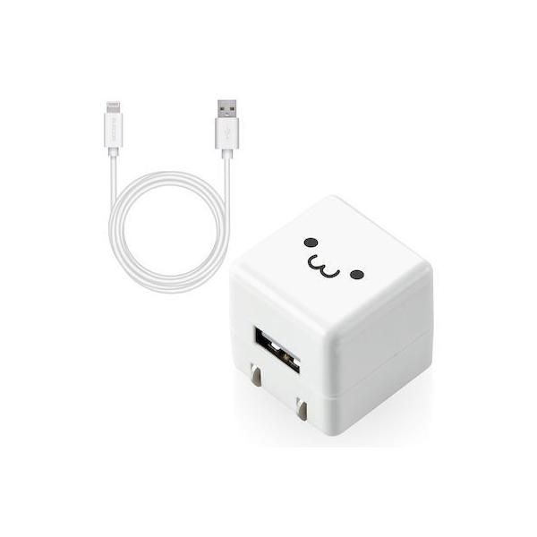 エレコム ELECOM MPA-ACL05WF iPhone充電器 iPad充電器 Lightning AC ケーブル同梱 ホワイトフェイス コンパク