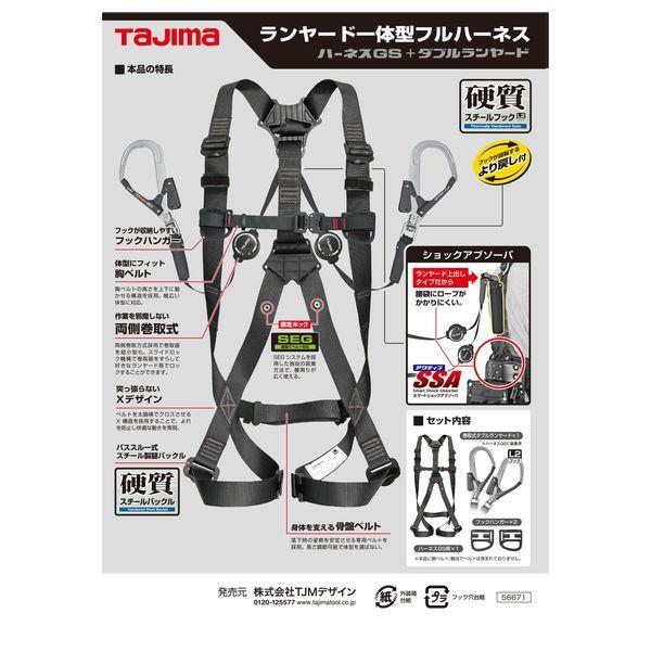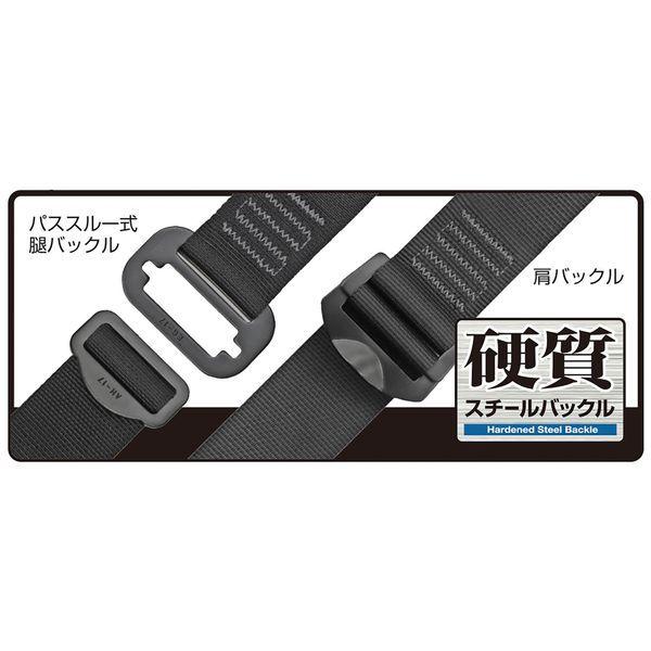 (株)TJMデザインメーカーお問い合わせ:0120-125577【商品説明】●特徴●束縛感の少ないベーシックフィット構造●肩に食い込まない46mm幅広ベルト●ハーネスを胴当てベルトに直接取り付けるから装着スペースを奪わない●ハーネス用フックハンガー付●作業の邪魔にならない両側巻取式を採用した超小型巻取式(ロック機能なし)●ショックアブソーバを背中ベルトにがっちり固定するダブル固定バンドを採用●アクティブSSA(スマートショックアブソーバ)を搭載。 ランヤード上出しタイプなので腰袋にロープが掛かりにくい●フックは硬質焼入ゲート付スチールフック(L2フック)●ランヤードが絡まりにくいより戻し付●仕様、規格●厚生労働省「墜落制止器具の規格」適合品●最大使用可能質量:100kg●種類:フルハーネス型●参考適合身長:155-165cm●ランヤード長:1.5m●最大自由落下距離:2.3m●落下距離:4.1m●ランヤード:巻き取り式ダブル●サイズ:S●色:黒●腿バックル:パススルー●ベルト幅(mm):46●フック口開き(mm):55●ランヤード幅×長さ(mm):16.5×1500●胸ベルト幅(mm):26●材質●フック:スチール●ロープ:ナイロン●接続環:スチール●ベルト:ポリエステル