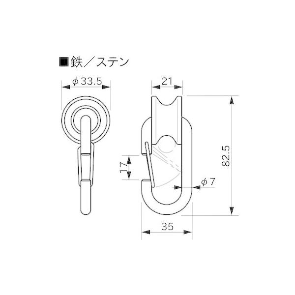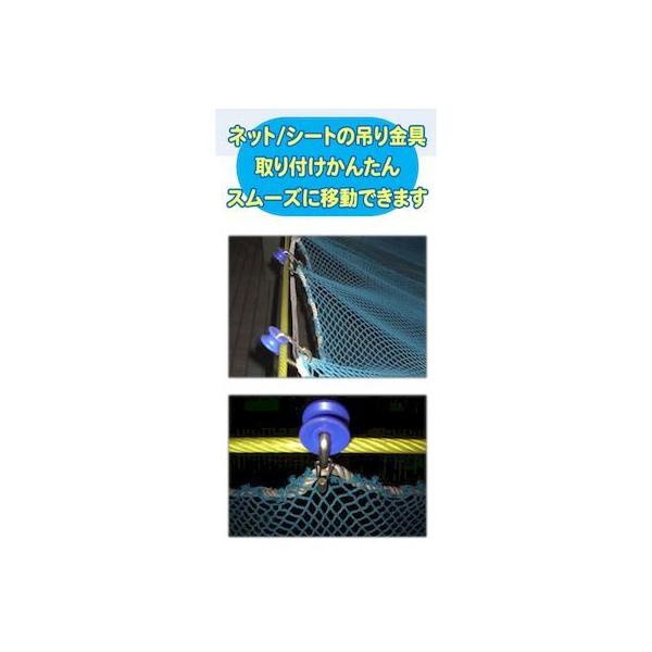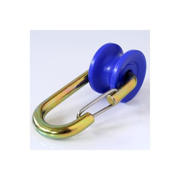 【商品説明】●取り付け簡単でスムーズに移動できます。【商品用途】●ネット・シートの吊り金具に。【注意】●取付間隔は50cm以内にしてください。【仕様】●使用荷重:20kg●摘要ロ?プ径:φ10~12mm【材質】●本体:鉄SWRM(クロメートメッキ)● スプリングゲート:SUS304(バレル研磨)● プーリー:PP(青)