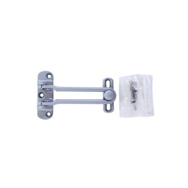 【商品説明】●扉を少し開いた状態で訪問者に応対できるので、防犯に適しています。ワンタッチ操作可能。【商品用途】●玄関扉の補助締まり【注意】●取り付けの際、木部の割れやビスの破損を防ぐためキリで下穴を開けてください。●本製品は改良等の目的から仕様・デザインなどを予告なしに変更する場合があります。予めご了承ください。【仕様】●タイプ:外開用【カラー】●シルバー【材質】●本体:亜鉛ダイカスト●仕上げ:ソフトクロームメッキ【付属品】●使用ネジ:ステン・バインドM4×12mm(2本)、ステン・皿M4×12mm(3本)
