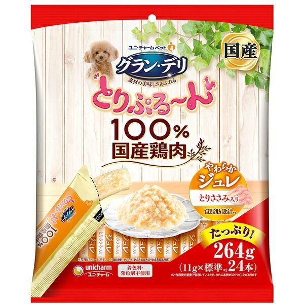 【商品説明】100%国産鶏肉を使用した、とっても美味しい素材感が楽しめる愛犬用おやつです。【 原材料 】肉類(鶏胸肉、ささみ)、動物性油脂、寒天、調味料、増粘多糖類、乳酸カルシウム【 保証分析値 】粗たんぱく質:3.0%以上、粗脂肪:2.0%以上、粗繊維:1.0%以下、粗灰分:3.0%以下、水分:95.0%以下【 代謝エネルギー 】約7kcal/1本【 原産国 】日本【 製造日からの賞味期限 】24ヶ月【 メーカー名 】ユニ・チャーム【 JANコード 】4520699645734
