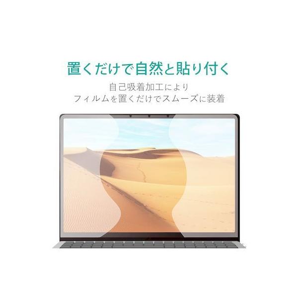 エレコムメーカーお問い合わせ:0120-898-794【商品説明】●液晶画面をキズや汚れから守る、スムースタイプの反射防止フィルムです。●光の映り込みを抑え見やすい画面を実現する、反射防止タイプです。●なめらかな指すべりで快適に操作でき、指紋が目立ちにくいスーパースムースコートを施しています。●フッ素コートにより、指紋や皮脂をはじき、画面をきれいに保ちます。●液晶ディスプレイが発する光の中の青い部分「ブルーライト」を約40%カットします。●※ブルーライトは目の角膜や水晶体で吸収されずに網膜まで到達し、網膜の機能低下を引き起こす場合があると言われています。●無機系銀抗菌加工により、雑菌の繁殖を抑え、いつでも清潔な画面を保ちます。●抗菌とは、製品の表面上に存在する細菌の増殖を抑制することです。JIS(日本産業規格)では抗菌加工されていない製品の表面と比較して、細菌を99%以上抑制出来ている場合、その製品に抗菌効果があると規定しています。●時間の経過とともに気泡が目立たなくなる特殊吸着層を採用したエアーレスタイプです。●小さな気泡ができたときには、指などで押し出すことで気泡を抜くことができます。●摩擦を軽減した表面仕上げで、スベスベした快適な操作を実現します。●鉛筆硬度3Hのハードコート加工により、フィルム表面のキズを防止します。※硬度3Hは実力値です。●フィルムのチラつき低減加工により、目に優しく見やすい画面を保ちます。●貼り付け面にシリコン皮膜をコーティングし、接着剤や両面テープを使わずに貼り付け可能な自己吸着タイプです。貼りやすく、貼り直しも可能です。吸着力は水洗いで回復します。●フィルムがキレイに貼れる、専用ヘラと、クリーニングクロス、ホコリ取りシールが付属しています。