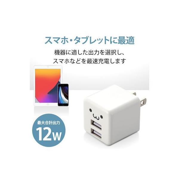 エレコム ELECOM MPA-ACU11WF スマホ充電器 AC充電器 USBポート×2 2.4A出力 コンパクト キューブ型 ホワイトフェイス ケ