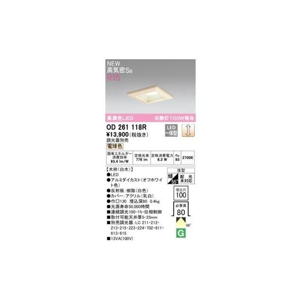 オーデリックメーカーお問い合わせ:03-3332-1123【商品説明】調光器別売 消費電力8.3W Ra94 【木枠(白木)】 ●LED ●ルミダイカスト(オフホワイト色)●反射板:樹脂(白色)●カバー:アクリル(乳白) ●巾□130 埋込深80 0.4kg ●光源寿命50,000時間 ●連続調光100-1%・位相制御 ●取付可能天井厚5-25mm 浅型 傾斜55°(配光傾斜未対応) その他 ベース_拡散