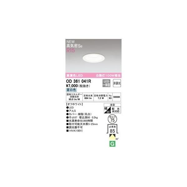 オーデリックメーカーお問い合わせ:03-3332-1123【商品説明】消費電力7.2W Ra94 【オフホワイト】 ●LED ●ルミ●カバー:樹脂(乳白) ●巾φ87 埋込深80 0.2kg ●光源寿命50,000時間 ●取付可能天井厚5-25mm ●調光器不可 浅型 傾斜55°(配光傾斜未対応) その他 ベース_拡散