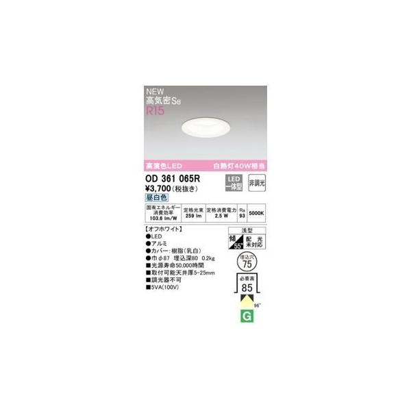 オーデリックメーカーお問い合わせ:03-3332-1123【商品説明】消費電力2.5W Ra94 【オフホワイト】 ●LED ●ルミ●カバー:樹脂(乳白) ●巾φ87 埋込深80 0.2kg ●光源寿命50,000時間 ●取付可能天井厚5-25mm ●調光器不可 浅型 傾斜55°(配光傾斜未対応) その他 ベース_拡散