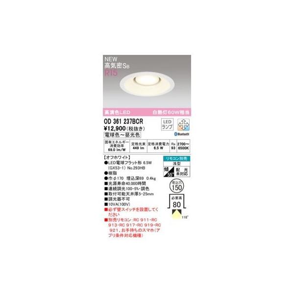オーデリックメーカーお問い合わせ:03-3332-1123【商品説明】消費電力6.3W Ra94 【オフホワイト】 ●LED電球フラット形 6.3W(GX53-1) No.293HB ●脂 ●巾φ170 埋込深69 0.4kg ●光源寿命40,000時間 ●連続調光100-5%・調色 ●取付可能天井厚5-25mm ●調光器不可 ●必ずコネクテッドスイッチ(別売)または壁スイッチを設置してください ●リモコン別売:別売BT調光・調色リモコン居室CL以外用+別売コネクテッドスイッチ リモコン別売 浅型 傾斜55°(配光傾斜未対応) その他 ベース_拡散