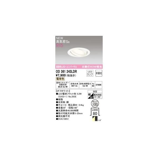 オーデリックメーカーお問い合わせ:03-3332-1123【商品説明】消費電力5W Ra94 【オフホワイト】 ●LED電球フラット形 5W(GX53-1) No.293E ●脂●反射板:鋼 ●巾φ114 埋込深69 0.4kg ●光源寿命40,000時間 ●取付可能天井厚5-25mm ●調光器不可 浅型 傾斜55°(配光対応0-30°) その他 タスク_拡散