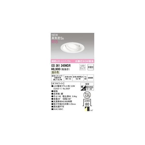オーデリックメーカーお問い合わせ:03-3332-1123【商品説明】消費電力5W Ra94 【オフホワイト】 ●LED電球フラット形 5W(GX53-1) No.293F ●脂●反射板:鋼 ●巾φ148 埋込深69 0.4kg ●光源寿命40,000時間 ●取付可能天井厚5-25mm ●調光器不可 浅型 傾斜55°(配光対応0-30°) その他 タスク_拡散