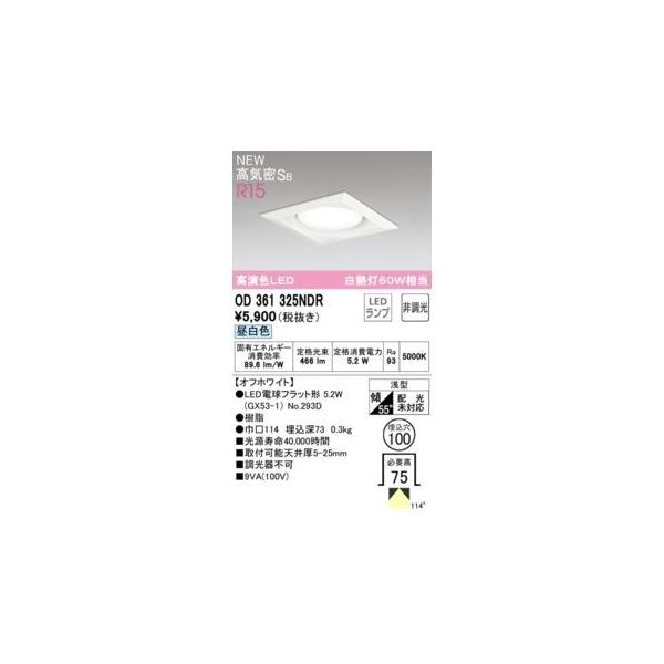オーデリックメーカーお問い合わせ:03-3332-1123【商品説明】消費電力5W Ra94 【オフホワイト】 ●LED電球フラット形 5W(GX53-1) No.293D ●脂 ●巾□114 埋込深73 0.3kg ●光源寿命40,000時間 ●取付可能天井厚5-25mm ●調光器不可 浅型 傾斜55°(配光傾斜未対応) その他 ベース_拡散