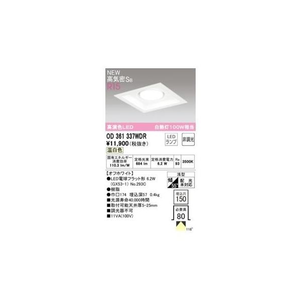 オーデリックメーカーお問い合わせ:03-3332-1123【商品説明】消費電力6W Ra94 【オフホワイト】 ●LED電球フラット形 6W(GX53-1) No.293C ●脂 ●巾□174 埋込深57 0.4kg ●光源寿命40,000時間 ●取付可能天井厚5-25mm ●調光器不可 浅型 傾斜55°(配光傾斜未対応) その他 ベース_拡散