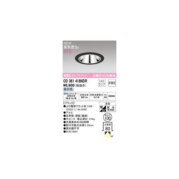 オーデリックメーカーお問い合わせ:03-3332-1123【商品説明】消費電力5W Ra94 【ブラック】 ●LED電球フラット形 5W(GX53-1) No.293D ●ルミ●反射板:樹脂(鏡面) ●巾φ114 埋込深80 0.4kg ●光源寿命40,000時間 ●取付可能天井厚5-25mm ●調光器不可 浅型 傾斜55°(配光傾斜未対応) その他 ベース_拡散