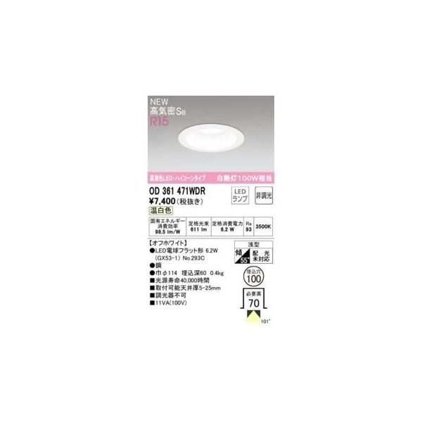 オーデリックメーカーお問い合わせ:03-3332-1123【商品説明】消費電力6W Ra94 【オフホワイト】 ●LED電球フラット形 6W(GX53-1) No.293C ●●鋼 ●巾φ114 埋込深60 0.4kg ●光源寿命40,000時間 ●取付可能天井厚5-25mm ●調光器不可 浅型 傾斜55°(配光傾斜未対応) その他 ベース_拡散