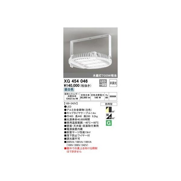 オーデリックメーカーお問い合わせ:03-3332-1123【商品説明】消費電力195W Ra80 ●LED ●ルミ合金鋳物(白色) ●キャブタイヤケーブル1.4m ●巾465 長440 高280 9.2kg ●光源寿命40,000時間 ●使用温度範囲:-40℃~60℃ ●壁面・天井面・床面取付兼用 ●電源装置内蔵 ●耐雷サージ性能15kV ●落下防止ワイヤー付 ●調光器不可 ●屋外での真上を向ける照射はできません 防雨型 40° 傾斜天井対応 その他 100-242 タスク_拡散