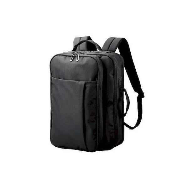 エレコムメーカーお問い合わせ:0120-898-794【商品説明】●2つの気室と3つの前面ポケットで収納できる、使い勝手の良いビジネスパックパックです。●パソコンや書類・小物なども持ち運べる十分な収納スペースを備えたバックパックタイプです。●前面ポケットには小物、メインポケットには着替えや書類などを収納できます。●15.6インチまでのノートパソコンが収納可能なパソコン収納気室がついています。●表面生地にはフッ素コーティング撥水加工を施しています。※内部への水の浸入を完全に防ぐものではありません。●背負いだけでなく、ハンドル付で手提げも可能です。●背面にキャリーバーへ固定できるキャリーベルトを配置しています。