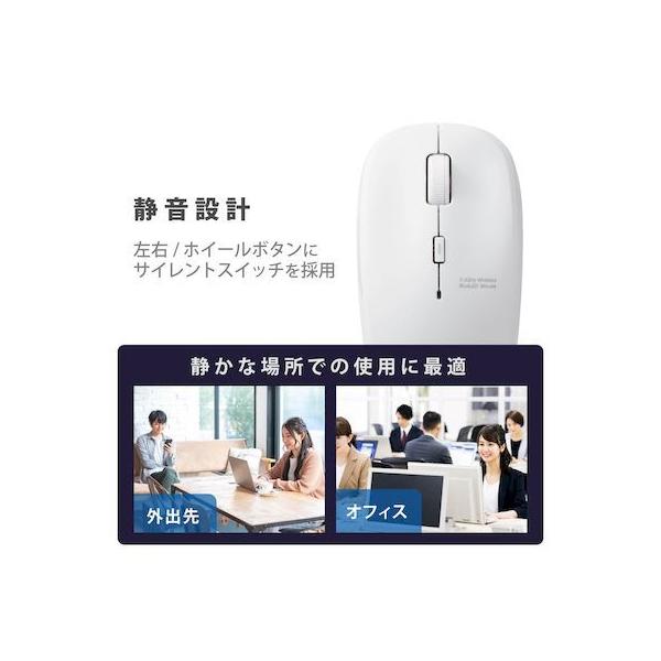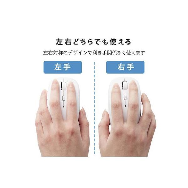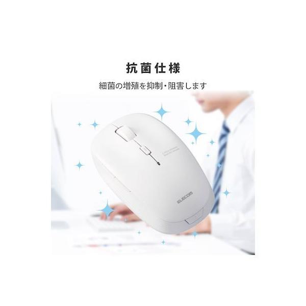 エレコムメーカーお問い合わせ:0120-898-794【商品説明】●ネットの閲覧などの操作に便利な「進む」・「戻る」ボタンが付いた5ボタンワイヤレスBlueLEDマウス。●マウスのクリック時のカチカチ音がしない静音スイッチを採用し、音が気になる場所でも使えます。●無料でダウンロードできる「エレコムマウスアシスタント」を利用することで、各ボタンにお好みの機能を割り当てることができます。●標準的なMサイズのため、長時間使用していても手が疲れにくく、オフィスでの利用にも最適です。●財団法人日本規格協会(JSA)が定める抗菌性試験に準拠し、表面上における細菌の増殖を抑制、あるいは阻害する性能を持つ抗菌仕様です。●2.4GHz帯を採用したワイヤレスタイプで、非磁性体で約10m、スチールデスクなど磁性体上でも約3mの範囲で使用可能です。(当社調べ)●ノートパソコンのUSBポートに接続しても気にならず、装着したまま持ち運び可能な1円玉サイズのマイクロレシーバを採用しています。●レシーバはマウス本体内に収納できるため、持ち運び時のレシーバの紛失を防ぎます。●小さな凹凸やホコリでもより正確に光が反射し、場所を選ばずに快適に使用できるBlueLEDを搭載しています。●本体上部にポインタ速度変更ボタンを装備し、用途にあわせてマウスのカーソル速度を1000/1500/2000カウントの3段階に切り替え可能です。●本体裏面に電源スイッチがあり、不使用時の電池の消耗を防止できます。●電池の交換時期をお知らせする電池残量表示ランプを搭載しています。