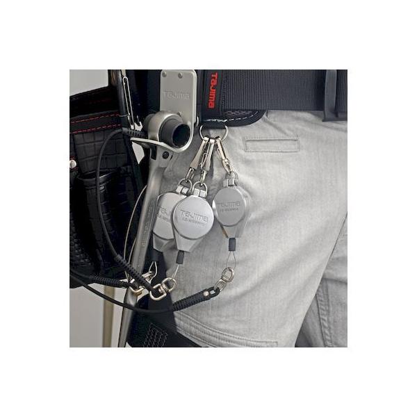 (株)TJMデザインメーカーお問い合わせ:0120-125577【商品説明】●特徴●腰周りへの取り付けと工具交換時の着脱が簡単なWナスカンリールを複数取付けてもロープが絡まないので、作業を妨げない。●つねにロープに一定のテンションがあるため、垂れたロープが足場などに引っ掛かる危険がなく、移動しやすい自動巻取り式。●工具重量に負けない衝撃耐久性に優れたアルミダイカストボディ。製品重量は101g(AZ-MSMR05)と軽量。●丈夫な金属ワイヤーを採用。ロープ長さ1,200mm(アシストロープ部含む)。本体に対しスムーズに自動巻取りができます。●ロープ引出しがシンプルで引っ掛からない吊り下げ片巻きタイプ:。●万一、工具を落下させてもアシストロープが伸びて衝撃を吸収。工具収納時の巻取りテンションを軽減し腰袋に収めやすい。●仕様、規格●取付可能工具重量:2.0kg以下●ロープ長:1200mm(アシストロープ部含む)●ロープタイプ:ストレート●ロープ材質:ワイヤー●巻取器材質:アルミダイキャスト●取付方法:ナスカン●機能:アシストロープ、ロープ連結より戻し●材質 アルミ