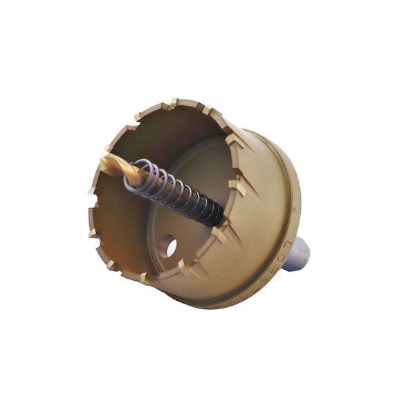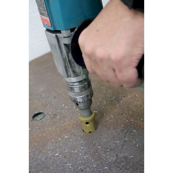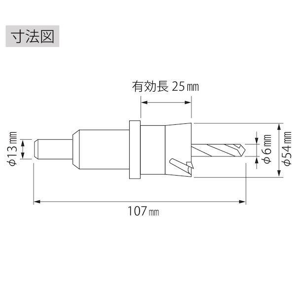 ロブテックスメーカーお問い合わせ:072-980-1111【特長】●ドリルと本体のチタンダブルコーティングです。●深孔を可能にした切り粉排出機構です。(0.3~25mmの深孔可能、ステンレスは6mm以下)●切りくず4分割でスムーズな切削ができます。●切りくず排出用スプリングを標準装備です。【用途】●被削材:ステンレス(6mm以下)、鋼板、銅などの金属系材(板およびパイプ)、木材、合板、合成樹脂などの木材系、石こうボード、人造大理石など軟質系窯業材。【仕様】●刃径(mm):54●ふところ深さ(mm):25●シャンク径(mm):13●刃厚(mm):3●適合機種:電気ドリル●有効切削能力(mm):25(ステンレスは6mm)●表面処理:チタンコーティング●刃数(枚):10●有効長(mm)【仕様2】●シャンク形状:三面取(ストレート)【材質/仕上】●刃部:超硬チップ●センタードリル:コバルト高速度鋼【原産国】日本