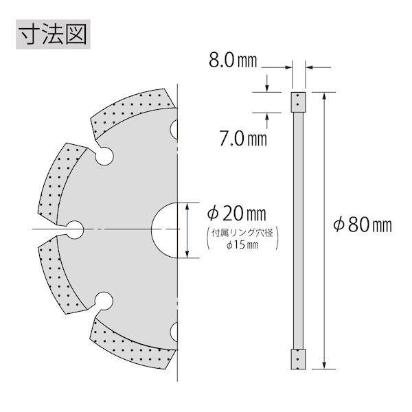 ロブテックスメーカーお問い合わせ:072-980-1111【商品説明】●モルタル・コンクリート等のハツリ作業に、目地切り、配線工事の溝切りに、その他補修作業に幅広く利用できます。●コンクリート・モルタルに発生するヒビ割れの補修に最適。●外形(mm)80●刃厚(mm)8.0●穴径(mm)20エビ印 LOBSTER ロブテックス エビ 工具 ロブスター ダイヤモンド工具 切削工具 切断工具 ダイヤモンドツール ダイヤモンドホイール ホイール 乾式ホイール コンクリート モルタル ひび割れ ヒビ割れ ヒビ補修 ひび補修 ハツリ作業 はつり作業 セグメントタイプ セグメン