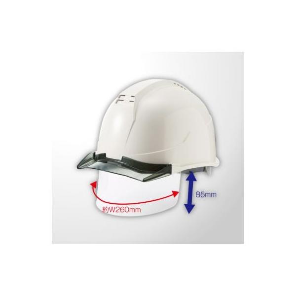 【商品説明】●特徴●幅広な収納式シールド搭載タイプ ●仕様、規格●着サイズ/最大61cm ●完成重量/530g●シールド幅約W260mm スライド長約85mm ●S式ワンタッチあご紐、S?8W耳紐標準仕様/グレー ●厚生労働省検定合格番号 ●飛来落下物用/TH3742 ●墜落時保護用/TH3743●帽体色 L緑 マット塗装