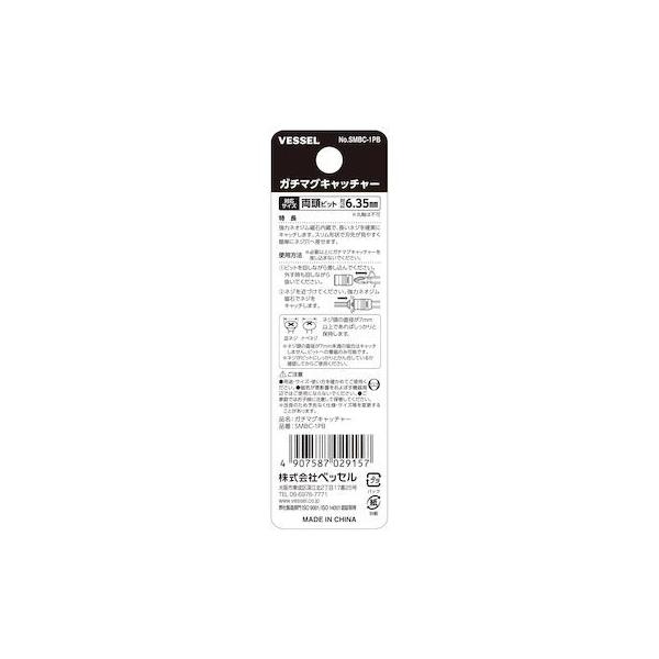 ベッセルメーカーお問い合わせ:0120-999-914【商品説明】●特徴●ネジをガッチリキャッチし倒れ防止に。●強力ネオジム磁石を内蔵。長いネジを確実にキャッチできる。●キャッチャー部分にネジ頭を近づけると、磁力で自動的に動いてネジを吸着。●スリム形状で刃先が見やすく、ネジ穴への挿入が容易。●仕様、規格●本体全長 20mm●本体重量 4g●適用ビット 6,35軸ビット●カラー 青