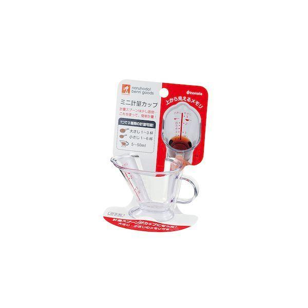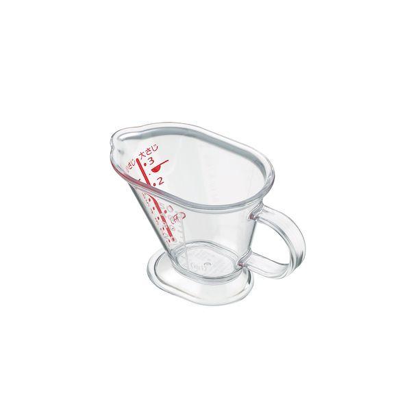 【商品説明】●計量スプーンがカップになった。大さじ・小さじのメモリ付き。●メモリが上から見える。●量りやすくて注ぎやすい。●三つの計量(大さじ1~3杯、小さじ1~6杯、5~50ml)が可能。●カラー:クリアー●サイズ:5.1×9.6×5.9Hcm●容量:70ml●材質:AS樹脂