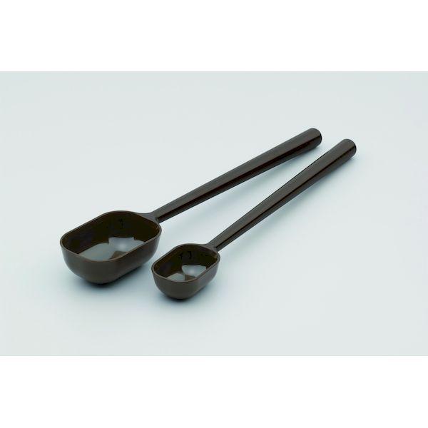 【商品説明】●深いビンやキャニスターポットの奥まで届く。●大さじ15mlと小さじ5mlのセット。●カラー:ブラウン●サイズ:大さじ 3.3×18×1.8Hcm/小さじ 2.4×16.6×1.4Hcm●容量:大さじ 15ml/小さじ 5ml●材質:AS樹脂(耐熱グレード)