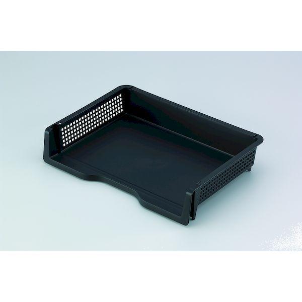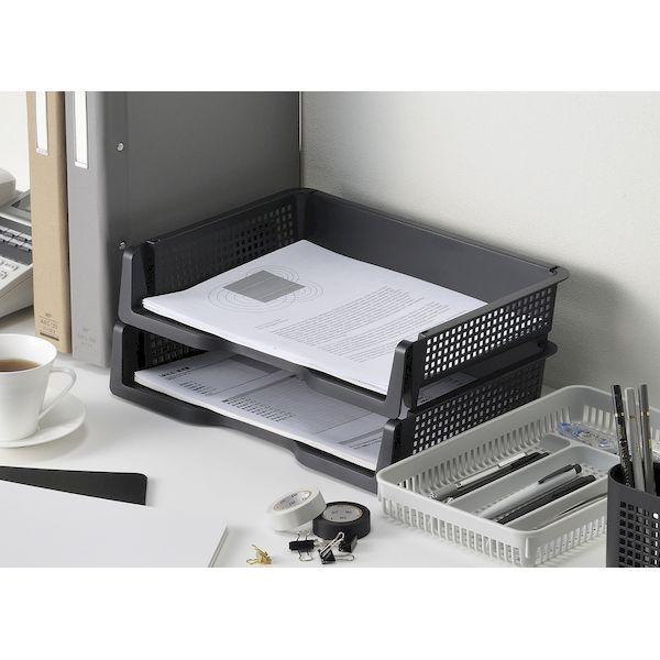 【商品説明】●デスク周りを機能的に。これで作業効率もアップ。●積み重ねOK。●カラー:ブラック●サイズ:33.9×24.1×7Hcm●材質:ポリプロピレン