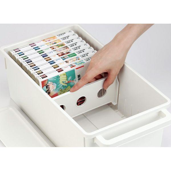 【商品説明】●DVD、ゲームソフト、コミックをスッキリ収納。●透明窓で中身が分かりやすい!●仕切り付きだから倒れず整理ができる!●ハンドル付きで出し入れがカンタン!●重ねて使えばスペース有効活用!●収納枚数:DVD約25枚/ゲームソフト:約25枚/大判コミック:約20冊/コミック:約25冊●カラー:ホワイト●商品サイズ:23.3×44.9×15.7Hcm●材質:本体・フタ・仕切り:ポリプロピレン/窓:スチロール樹脂