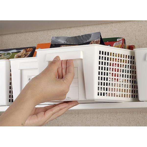 【商品説明】●シンプルで機能性を重視したラベルを貼りやすいトリムバスケット。●ラベル表記でスマートに整理。●パントリーのストック収納や冷蔵庫内の整理に便利。●カラー:ホワイト●サイズ:16.5×28.7×11.5Hcm●材質:ポリプロピレン