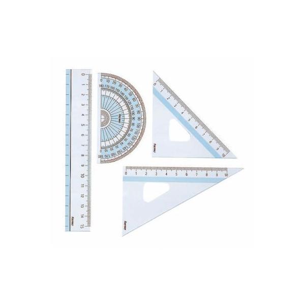 レイメイ藤井メーカーお問い合わせ:0120-68-0131【商品説明】●目盛り印刷は摩擦に強く落ちにくい特殊加工。直定規・三角定規・分度器のセット
