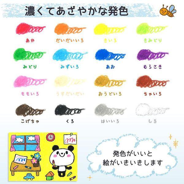 サクラクレパスメーカーお問い合わせ:06-6910-8823【商品説明】●手足や体についても水で洗えば容易に落とせます。●表面がつるっとしたところは、はみ出して描いてもぬれ雑巾で拭き取ることができます(※一部材質は除きます)●ミツバチの巣より採取されるみつろうを原材料の一部に使用しています。●力いっぱい握って描いても折れにくい太さです。●持ち運ぶとき散らばりにくいゴム付ケースです。●元あった場所にかたづけやすい色名シール付です。