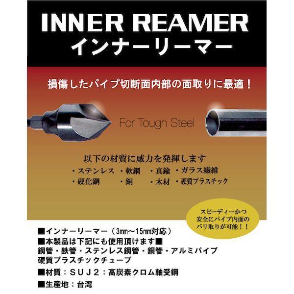 【商品説明】●破損したパイプ切断面内部の面取りに最適。●作業効率UP!●ステンレス・軟鋼・真鍮・ガラス繊維・硬化鋼・銅・木材・硬質プラスチック等に威力を発揮します。 ●鋼管・鉄管・ステンレス鋼管・銅管・アルミパイプ・硬質プラスチックチューブにも使用頂けます。●3mm~15mm対応●材質:SUJ2:高炭素クロム軸受鋼●商品サイズ:19(W)×19(H)×55(D)mm●重量:48g