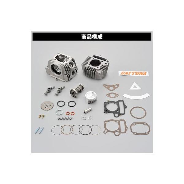 デイトナメーカーお問い合わせ:0120-60-4955【商品説明】リーズナブルで性能、耐久性に優れるシリンダーヘッド付ボアアップキット。IN/EXのポート形状を適正化、圧縮比10.7:1⇒11.0:1にアップし全域で性能向上(当社比)。ノーマル比で3~4倍のパワーアップを果たします。シリンダーヘッドにDAYTONAロゴをレーザーマーキング。マニホールド取付部の高さを下げることで、YD24/28キャブレターが装着可能になりました。【適合車種】モンキー/ゴリラ12V (フレームNo.:Z50J-2000001,AB27-1000001~)モンキー/ゴリラ3.1PS 6V (フレームNo.:Z50J-1600008~1805927)モンキーバハ (フレームNo.:Z50J-1700001~)JAZZ (フレームNo.:AC09-1000030~)●排気量:88cc●対応車種:モンキー/ゴリラ/モンキーバハ/JAZZ●付属品:NEWハイパーシリンダーヘッド、ハイカムシャフト、アルミシリンダー、軽量ピストン、ピストンリング、ガスケット類、カムチェーンスプロケット、原付二種ステッカーなど●ビッグフィン化され放熱性が向上●コスワースタイプの軽量な鋳造ピストンを採用。ピンボス付近の剛性を高めていますモンキー(12V)モンキー 3.1PS(6V)ゴリラ(12V)ゴリラ 3.1PS(6V)モンキーバハJAZZ※ 当社指定最高回転数:12,000rpm(1次側クラッチの場合は10,000rpm)※ ボアアップ化に伴い振動やエンジン音が増加します。※ オイルクーラーと油温計を装着し、油温の管理をしてください。高温(100℃以上)での連続走行を行なうとエンジンが破損する可能性があります。※ 別途の同時装着部品(強化クラッチ、強化オイルポンプ、強化カムチェーン)が必要です。純正部品のままで使用しますと、パワーの増大に耐えれなくエンジンが破損する可能性があります。※ 所定性能発揮のため、キャブレターとマフラーの交換が必要です。※ 高圧縮のため、ハイオクガソリン使用してください。