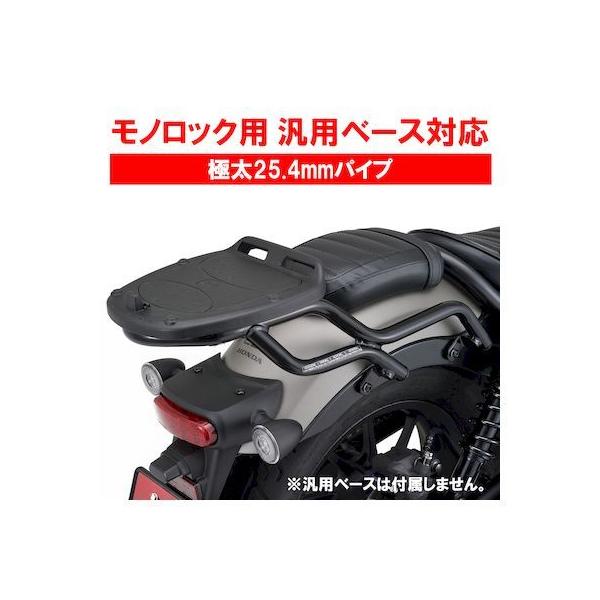 デイトナメーカーお問い合わせ:0120-60-4955【商品説明】GIVIモノロックケース用リアキャリア。極太インチサイズ(25.4mm)パイプ使用。モノロックケースに付属している汎用ベースで、ボックスの取り付けができます。●モノロック用 汎用ベース対応キャリア●ボックス装着後、最大積載重量:3kgRebel500(17~20)〈PC60〉Rebel250/ABS/S Edition(17~20)〈MC49〉※ サドルバッグサポート(右側/16896、左側/95225)を同時装着する場合は、別途サドルバッグサポート取付キット(97065)が必要です。左右取り付けの場合は2個必要となります。