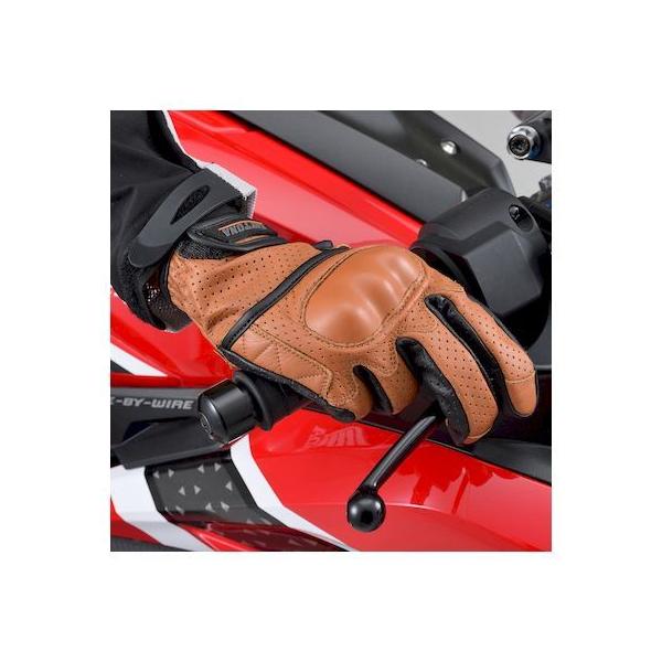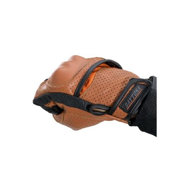 デイトナメーカーお問い合わせ:0120-60-4955【商品説明】しっとり柔らかな牛革をフィット感の良い立体裁断で仕立てたライディンググローブ。パンチング部は裏地もメッシュ生地にすることで、通気性を確保しました。ハードナックルプロテクターは手を握ったときにも突っ張りが少ないフローティング構造を採用しています。人差し指のタッチパネル対応部は側面まで回り込んでいるので、ストレスなくスマートフォンを操作できます。●サイズ:Lサイズ●カラー:ブラウン●素材:牛革 / メッシュ生地 / プロテクター:PVC●パンチング / 春夏秋●タッチパネル対応