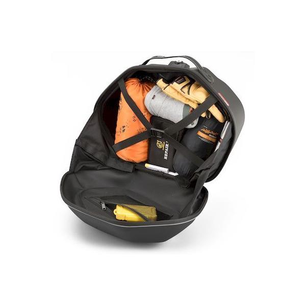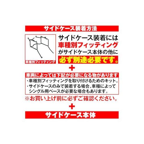 デイトナメーカーお問い合わせ:0120-60-4955【商品説明】軽量なセミハードのサイドボックス。蓋はファスナータイプで、ファスナーをダイヤルロックで施錠することが可能。セキュリティキーでサイドケースの脱着。トップケースWL901(19004)ウエイトレスとベストマッチ。IPX5の防水インナーカバー2個付属。【対応フィッティング】PL/PLRパニアホルダー●容量:25L(片側)●サイドケース左右セット●奥行×幅×高さ(外側):491×247×360mm●最大積載重量:5kg(片側)●IPX5の防水インナーカバー付属※ アウターシェルに防水性はありません。雨天時はボックス内に浸水しますので、インナーレインカバーや防水バッグをお使いください。※ トップケース用スペアキーシリンダーは付属しません。