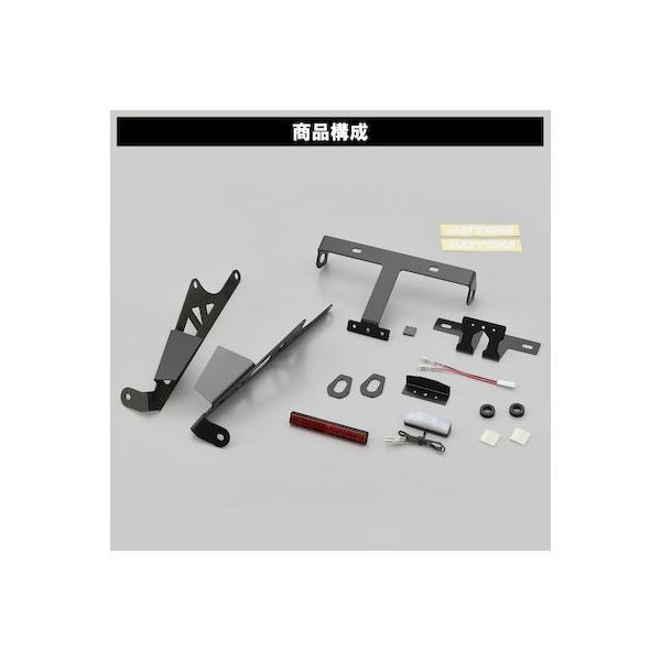 デイトナメーカーお問い合わせ:0120-60-4955【商品説明】スタイリッシュなリア周りを演出するフェンダーレスキット。純正ウインカーが無加工で装着でき、配線が目立たないようにデザイン。ナンバー取付角度は2021年度の新基準をクリアした40°に設計。車検対応のLEDライセンスランプ、スリムリフレクターが同梱。取り付けに必要な部品が全て揃った保安基準適合のボルトオン、カプラーオンキットです。●対応車種:CB650R(21) / CBR650R(21)●LEDライセンスランプ付き●2021年度新基準に基づくナンバー角度40°設計●メインブラケット:スチール製電着黒塗装●ウインカー&リフレクターステー:アルミ製ブラックアルマイト仕上げCB650R(21)CBR650R(21)※ 車検場によっては車両全長の記載事項の変更を指示される場合があります。その際は検査官の指示に従ってください。