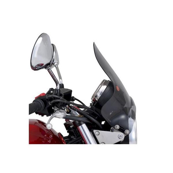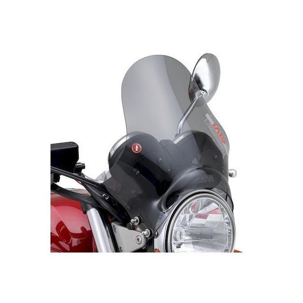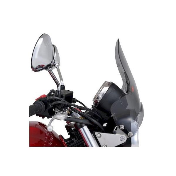 デイトナメーカーお問い合わせ:0120-60-4955【商品説明】アメリカンからネイキッドまで、車種を問わず幅広く取り付けることができる汎用スクリーン。スクリーン取付角度は微調整可能。汎用フィッティング付属。●汎用の小型スクリーン 高さ295×幅323(mm)●形状:ハーフラウンド形状●取付:ヘッドライトステークランプタイプ●材質:アクリル製●スクリーン色:セミスモーク※ セミユニバーサル商品です。ヘッドライト回りの形状により一部取り付けできない車両もあります。※ W650、400はライトステーが凹型なので市販のスペーサーが必要です。
